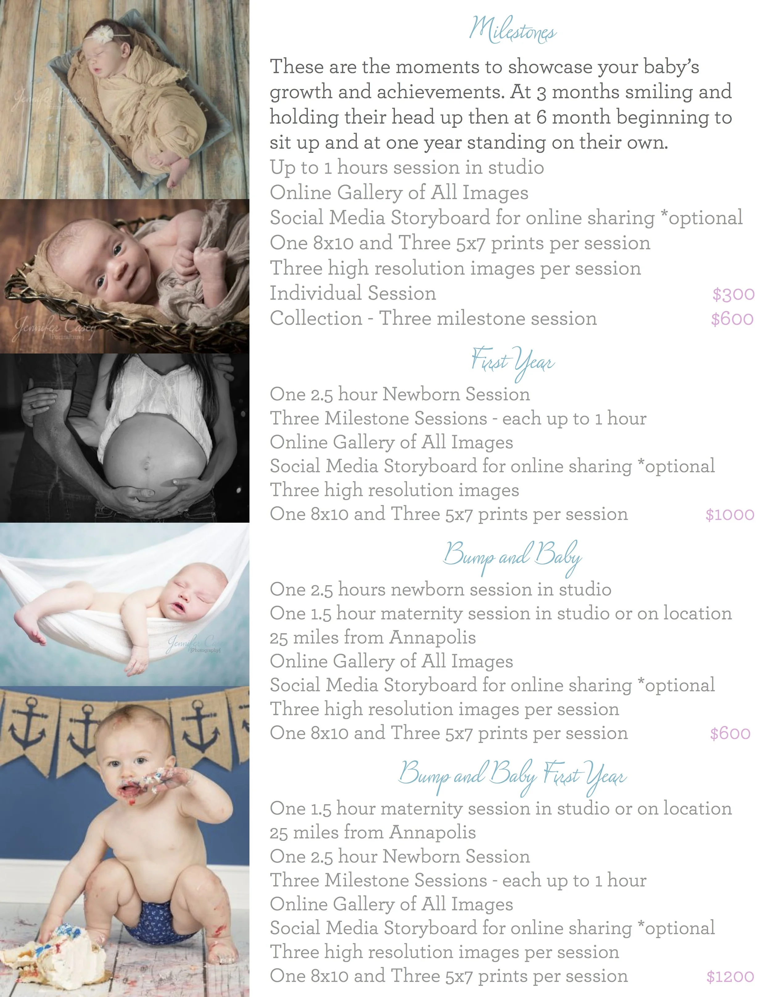 Below you will find my standard 2015 pricing for newborn, babies, and maternity photography.